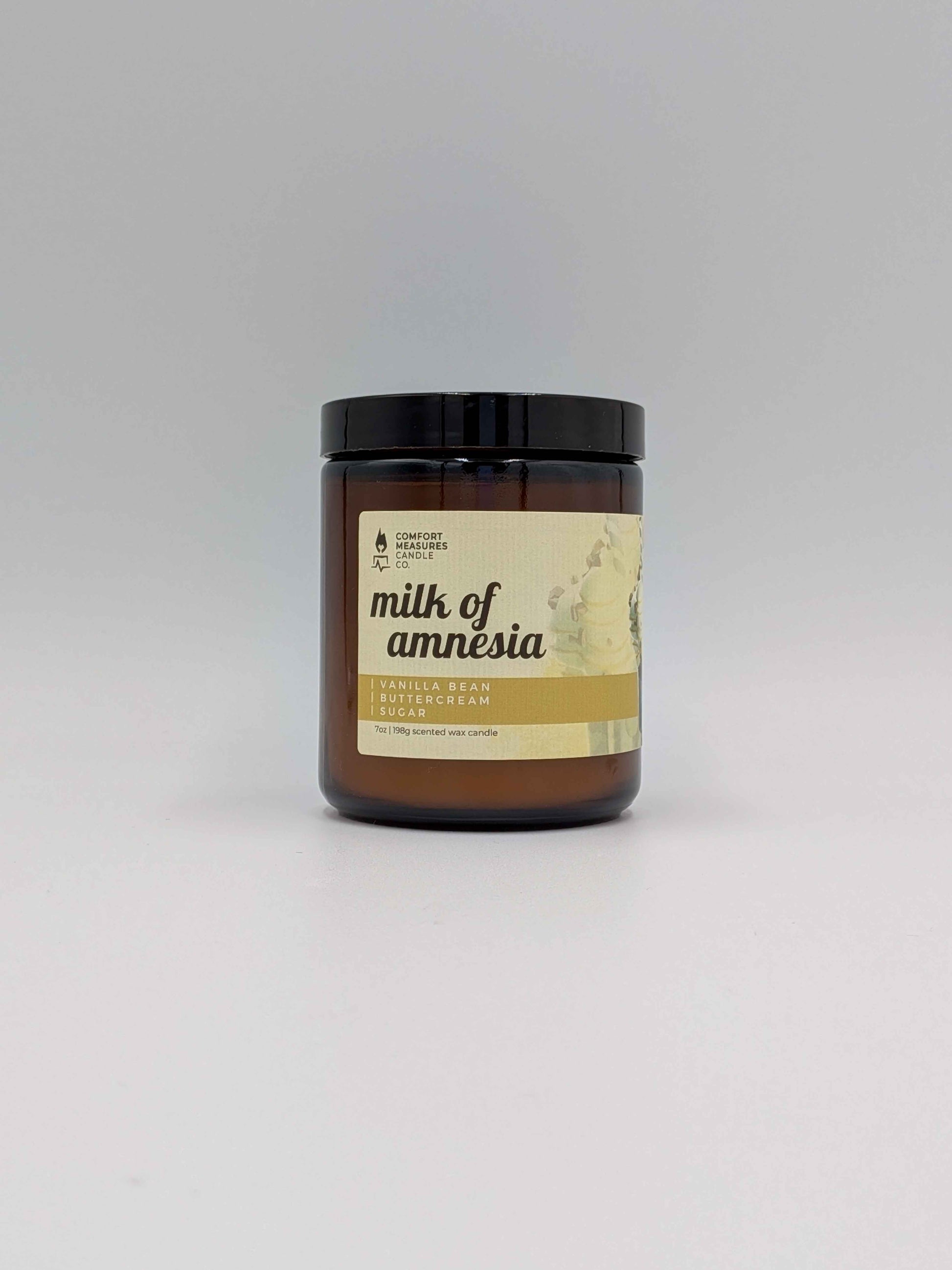 Propofol is a milky-looking white medication that is given intravenously for sedation and analgesia. For this reason, some healthcare professionals jokingly refer to it as "milk of amnesia" as a play on words as it relates to a different medication (milk of magnesia...but we won't go there). Milky, white, creamy; all words that can also describe a sweet vanilla milkshake which is where the idea for this candle originated.