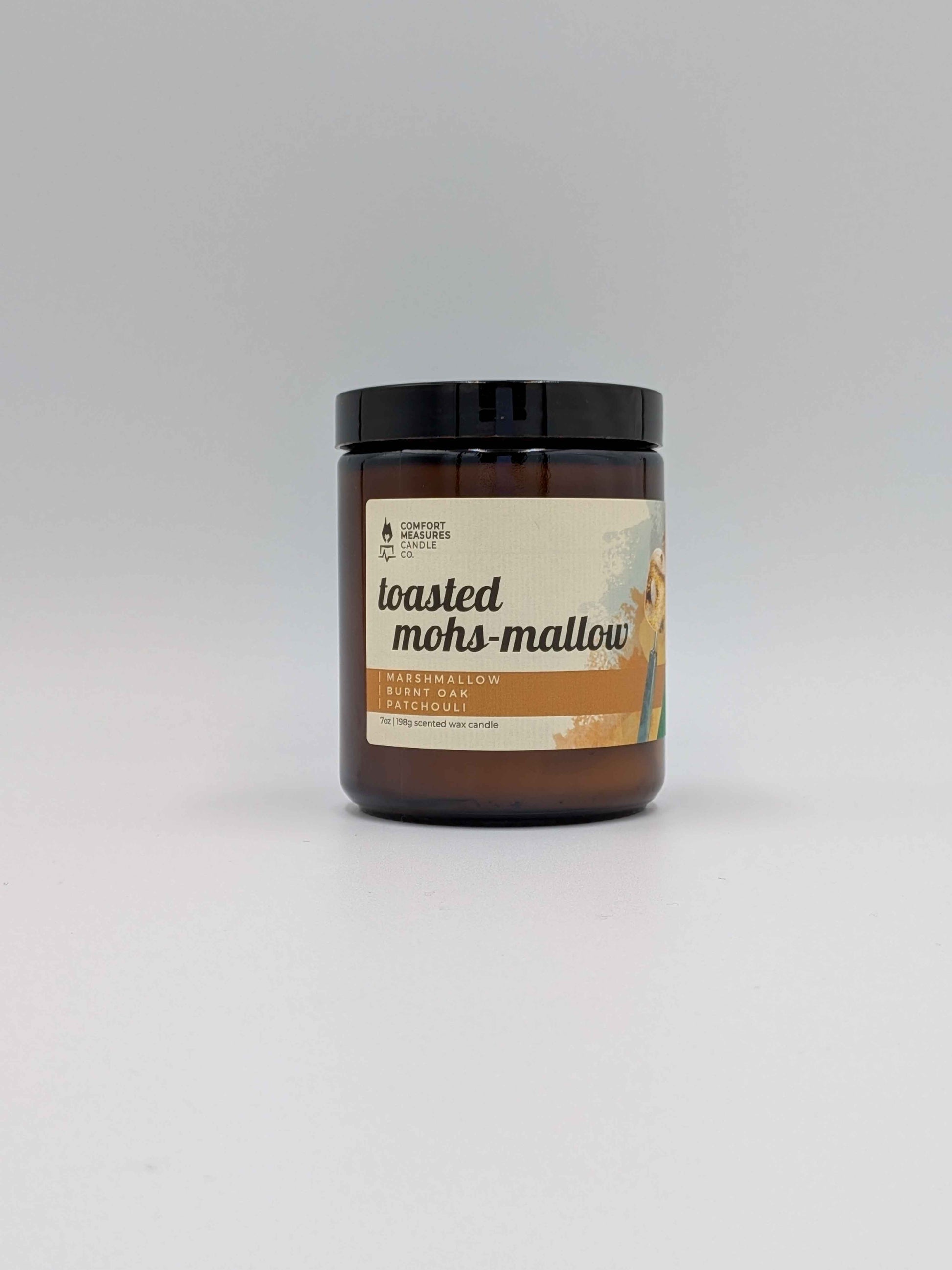 Mohs surgery is a procedure intended to treat skin cancer. The surgeon will remove a single layer of skin and immediately send the sample for examination under a microscope. The process repeats and continues until no cancerous cells remain in the sample. What's left is a punched out looking hole in the skin that's sutured at the completion of the surgery. During this process, cauterization may be used to control bleeding. What else has layers that peel off and has the potential to burn during the process? Marshmallows! This candle is inspired by burnt smells in the air combined with the sweet success of a Mohs procedure.